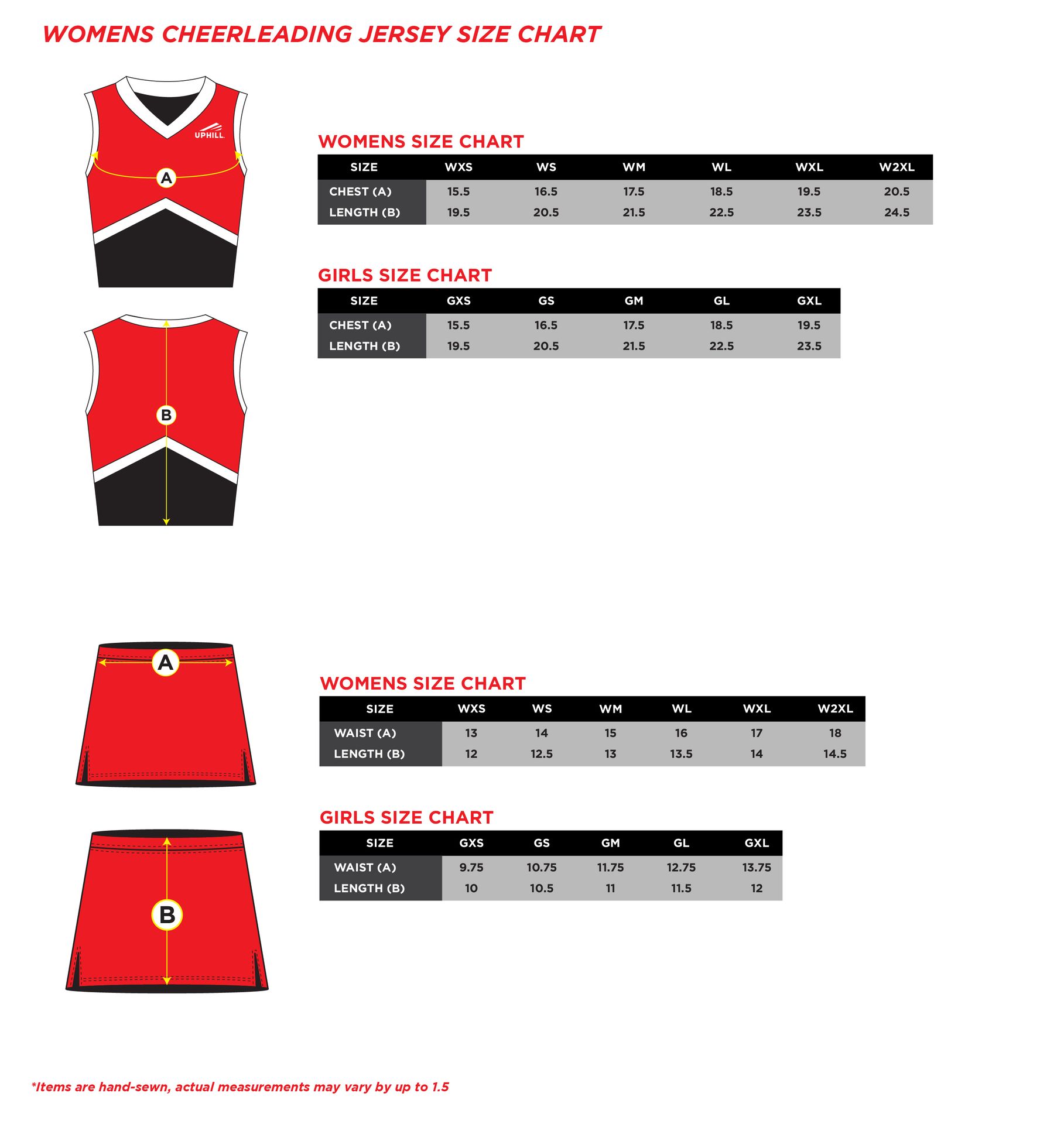 Elevate your team's look with Uphill Sportswear’s professionally crafted Cheerleader uniform! Whether it's for youth, women, or men, our jerseys are fully customizable to match your exact needs. You can mix and match styles to create the perfect fit for your team.